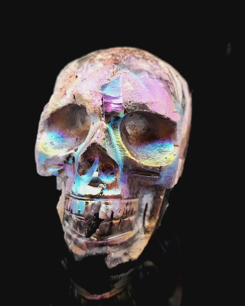 Titanium Aura Quartz Skull
